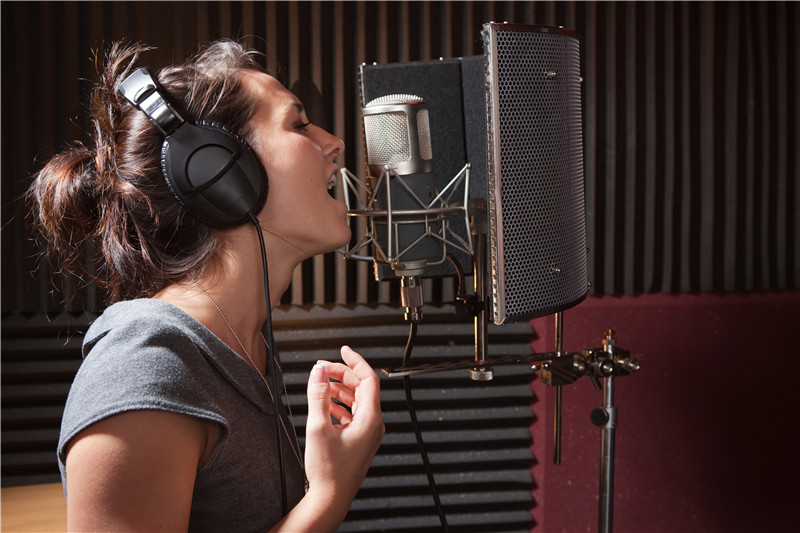 对白录音棚以语言清晰为主,均采用强吸声短混响。混响时间一般取中频(500Hz)0.5s,频率特性平直。当个别情节需要长混响时,可在加工制作或合成过程中追加人工混响。