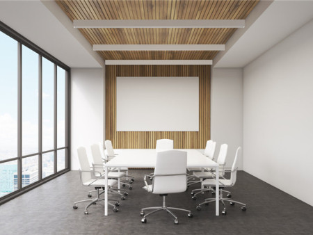小型会议室的混响时间约为0.5s-0.8s,除了必要的家具外,应在顶棚上作吸声处理,地面铺设地毯,必要时要备用发言系统。 中型会议室的混响时间为0.8s-1.0s,应该注意体型设计,避免发生音质缺陷。顶棚和后墙应作吸声处理,一般具有扩声系统和发言系统。 大型会议室可兼作电影厅,一般座位为300座-500座,混响时间为1.0s-1.2s,应考虑体型设计,避免音质缺陷。一般在顶棚和后墙作吸声处理,银幕后墙上,应作强吸声处理,以免产生声学缺陷。应具有固定的扩声设备和机房,控制人员应能看到大厅。 允许噪声级为40dB(A)。